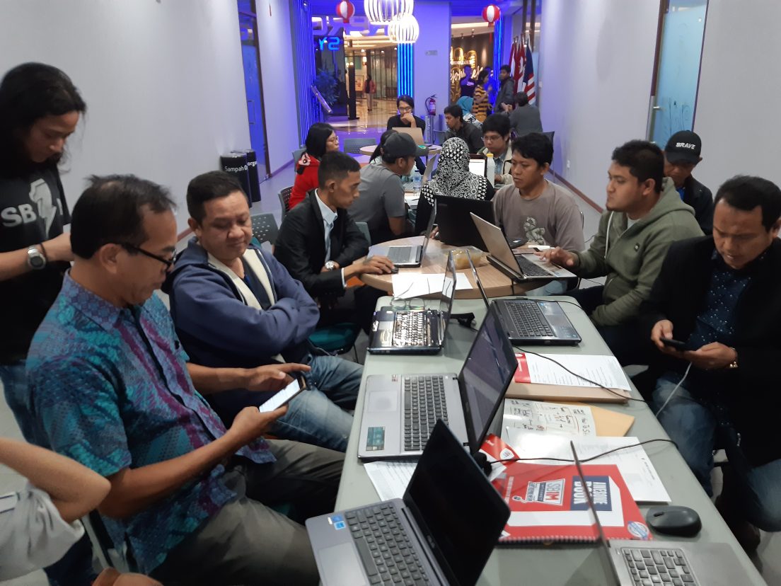 Gambar diatas adalah suasana komunitas digital marketing yang sedang mempraktekan jualan via online, dengan menggunakan tutorial dari mentor sebagai pendamping dan buku panduan dari SB1M.